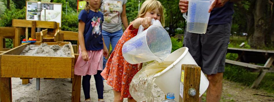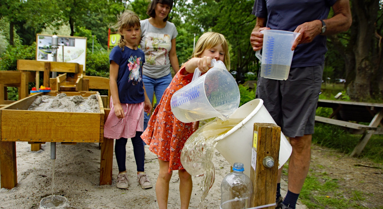 In de Klimaattuin kun je zelf water pompen. Dit water stuur je naar een waterstroombak of naar een sluizensysteem. Je bepaalt zelf de snelheid. Ook kun je testen hoe snel het water door de verschillende zandsoorten stroomt. Verder ontdek je met een waterrad, een waterlift en de octopus dat water een duurzame en krachtige energiebron is.